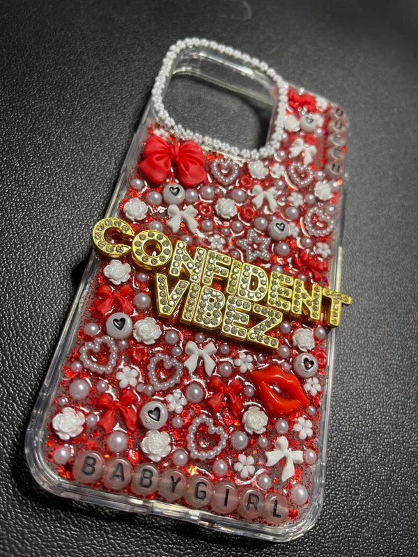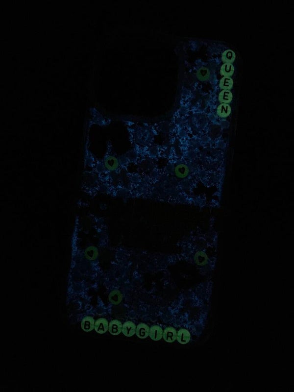 A custom freestyle pre-made case for the IPhone 15 Pro Max. This case also glows in the dark.